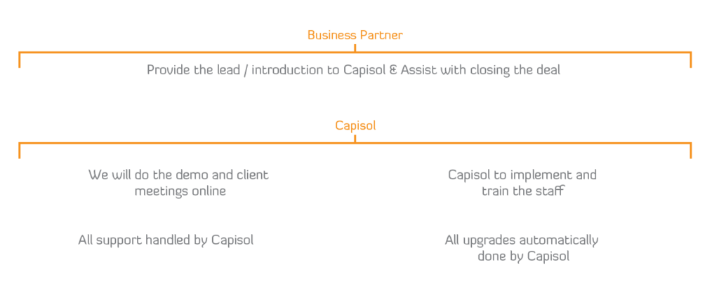 We have a lucrative reseller structure for software resellers and offer all implementation, support and updates. Explore the benefits of Capisol and sign up as a reseller today.